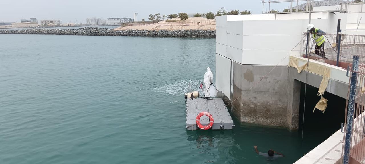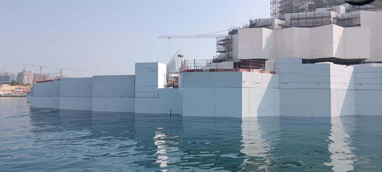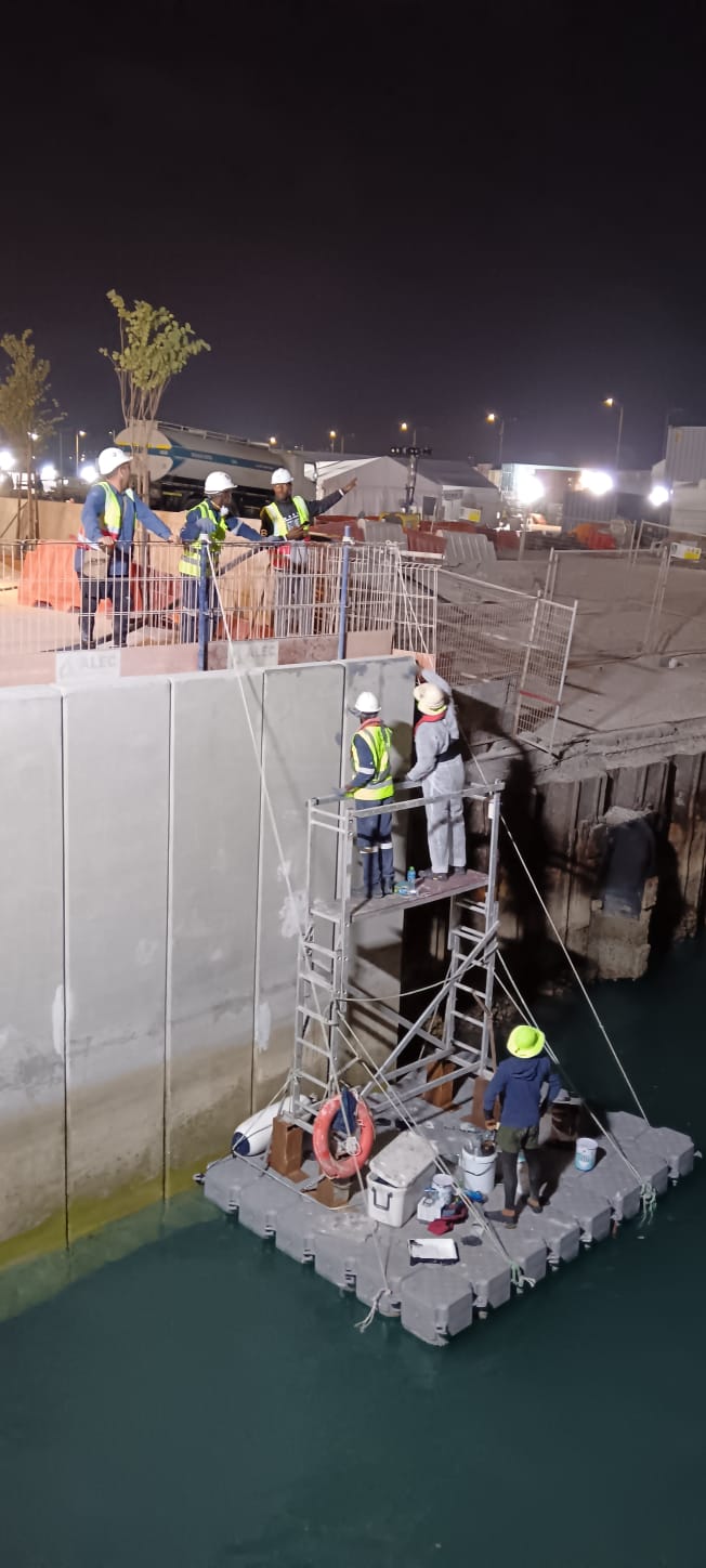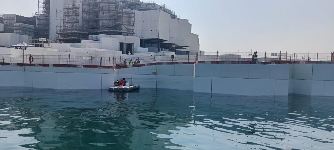 This project involved the specialized coating and restoration of marine quay walls at the Centre of Curiosity (COC), located adjacent to the Natural History Museum along Jacque Chirac Street, Saadiyat Cultural District. The primary objective was to achieve a seamless color and finish match with the adjacent NHM quay wall and planters, ensuring a continuous and uniform visual appearance across both developments.